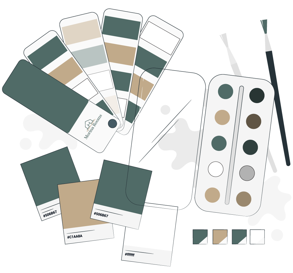 Per il design ho scelto un'estetica accogliente e raffinata, studiata per evocare il relax e lo stile unico del B&B. La palette cromatica Verde e Oro richiama direttamente la natura e la cura degli interni: un abbinamento che comunica freschezza, prestigio e armonia immediata.