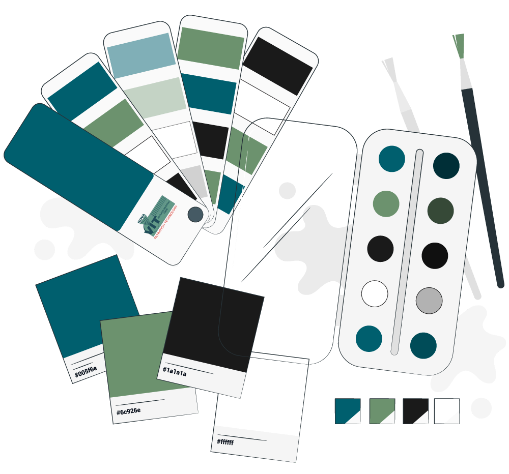 Per il design ho scelto un approccio visivo tecnico e nitido, studiato per riflettere l'efficienza e la qualità che Nova Vit garantisce nella filtrazione industriale. La palette cromatica si fonda sull'armonia funzionale tra la professionalità del Blu Istituzionale, la purezza del Bianco e la solidità del Grigio Meccanico.